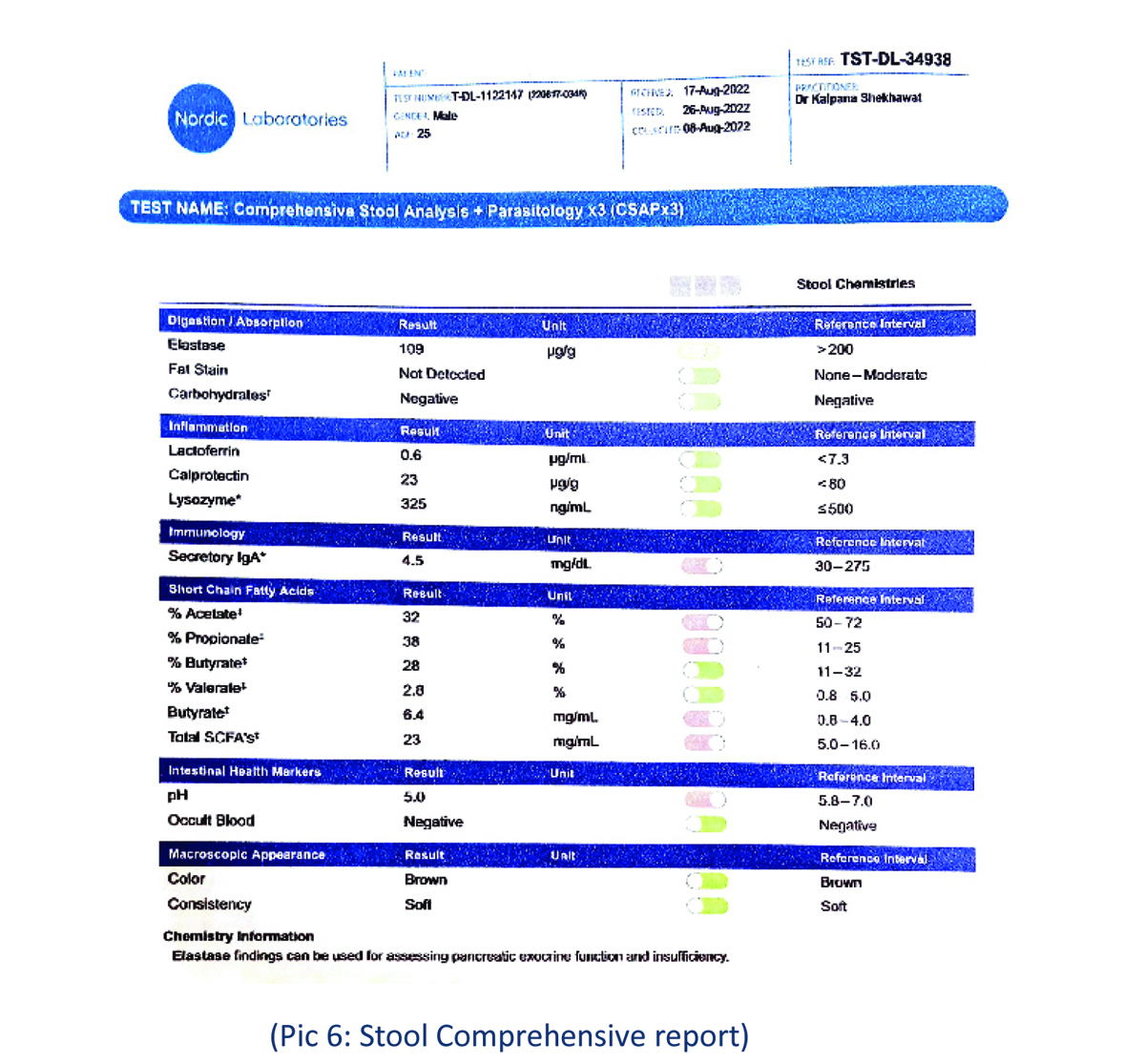 Apart from that low elastase digestive enzyme was found. Secretory IgA which represents gut immunity was way below normal i.e. 4.5 mg/dl ( 30-275).